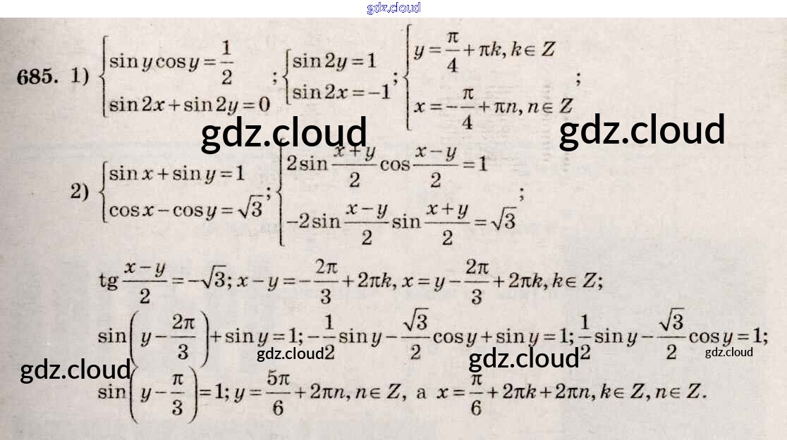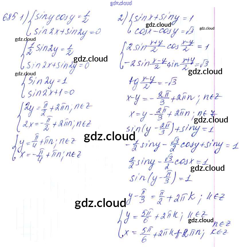 Ответ на задание 685 Учебник Алгебра за 10, 11 (десятый, одиннадцатый) класс Алимов, Ткачева, Колягин, Федорова, Шабунин Базовый и углубленный уровень 2015