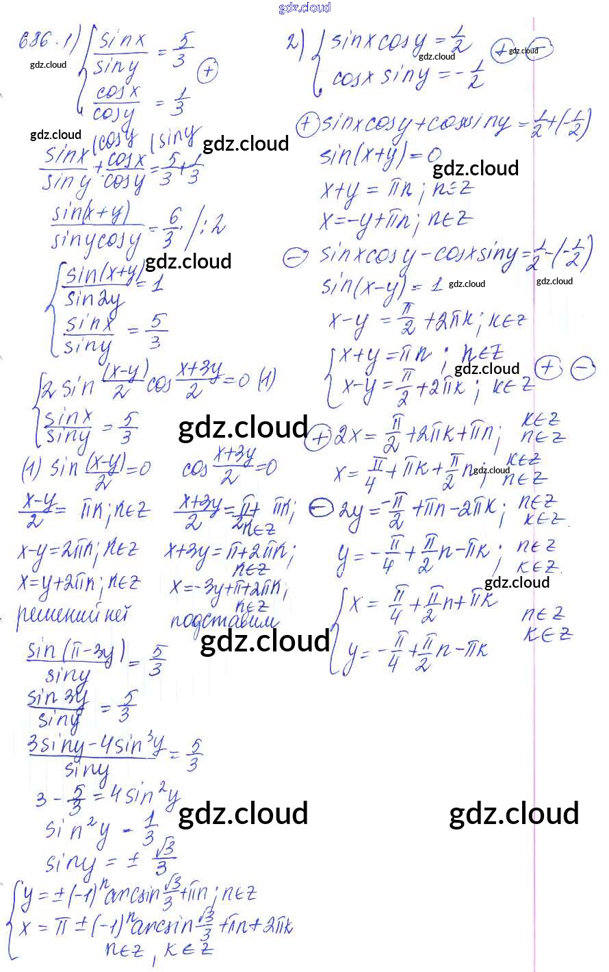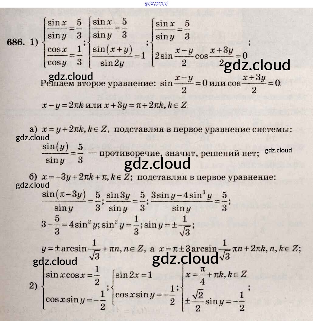 Ответ на задание 686 Учебник Алгебра за 10, 11 (десятый, одиннадцатый) класс Алимов, Ткачева, Колягин, Федорова, Шабунин Базовый и углубленный уровень 2015