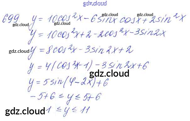 Ответ на задание 699 Учебник Алгебра за 10, 11 (десятый, одиннадцатый) класс Алимов, Ткачева, Колягин, Федорова, Шабунин Базовый и углубленный уровень 2015