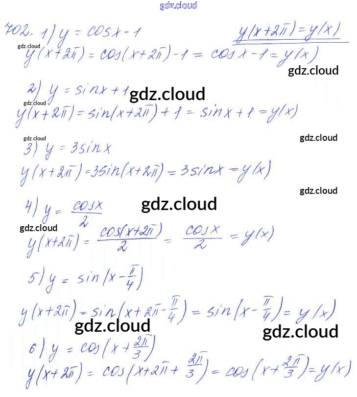 Ответ на задание 702 Учебник Алгебра за 10, 11 (десятый, одиннадцатый) класс Алимов, Ткачева, Колягин, Федорова, Шабунин Базовый и углубленный уровень 2015