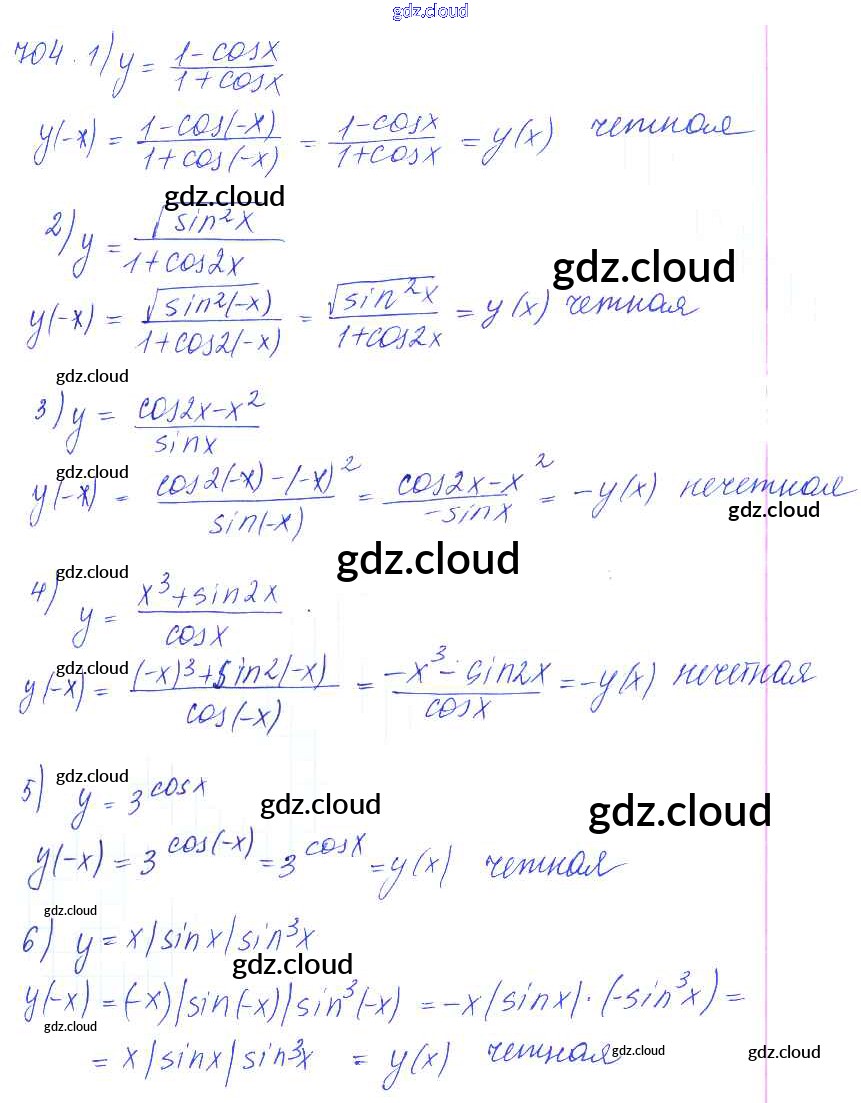 Ответ на задание 704 Учебник Алгебра за 10, 11 (десятый, одиннадцатый) класс Алимов, Ткачева, Колягин, Федорова, Шабунин Базовый и углубленный уровень 2015