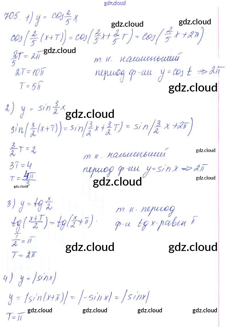 Ответ на задание 705 Учебник Алгебра за 10, 11 (десятый, одиннадцатый) класс Алимов, Ткачева, Колягин, Федорова, Шабунин Базовый и углубленный уровень 2015