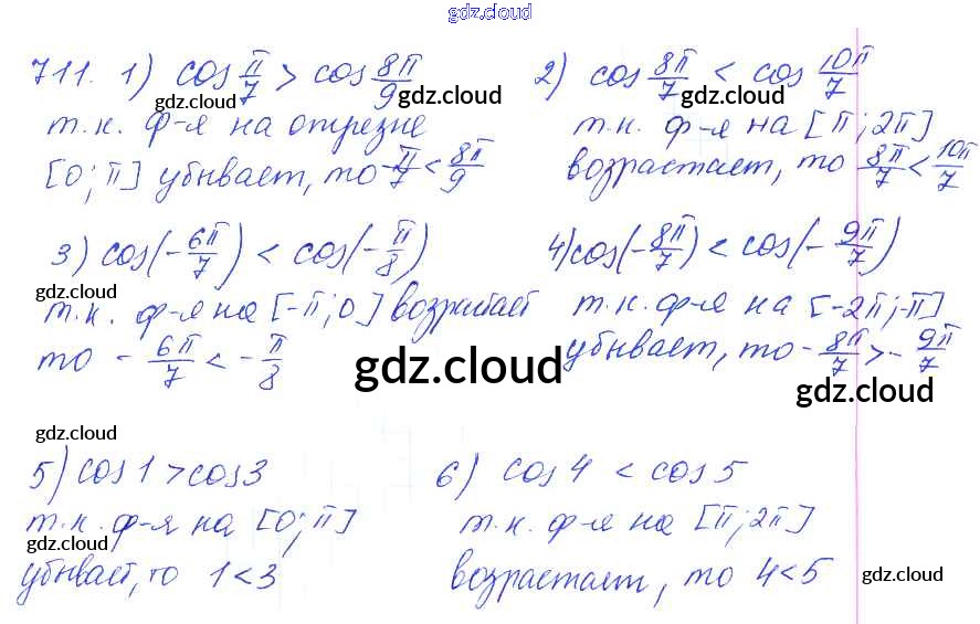 Ответ на задание 711 Учебник Алгебра за 10, 11 (десятый, одиннадцатый) класс Алимов, Ткачева, Колягин, Федорова, Шабунин Базовый и углубленный уровень 2015