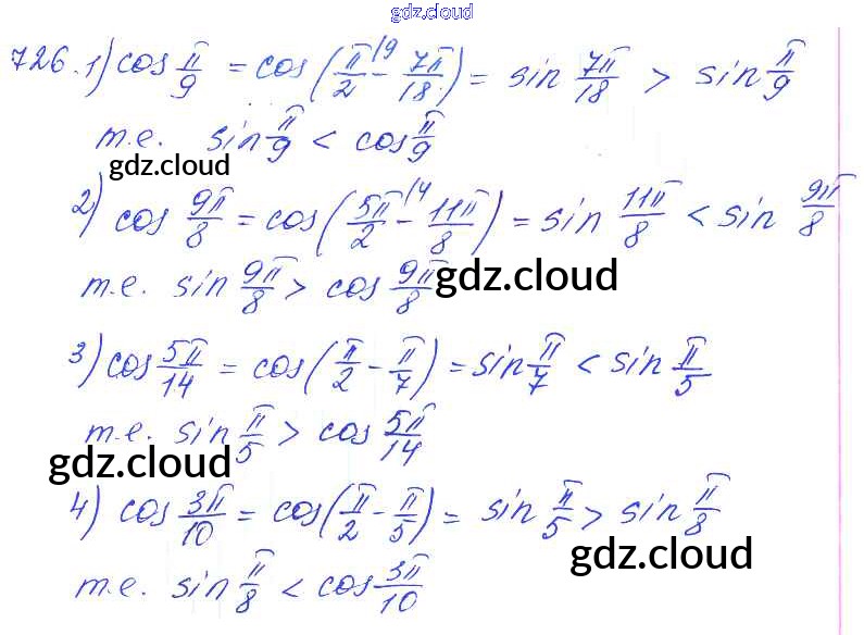 Ответ на задание 726 Учебник Алгебра за 10, 11 (десятый, одиннадцатый) класс Алимов, Ткачева, Колягин, Федорова, Шабунин Базовый и углубленный уровень 2015