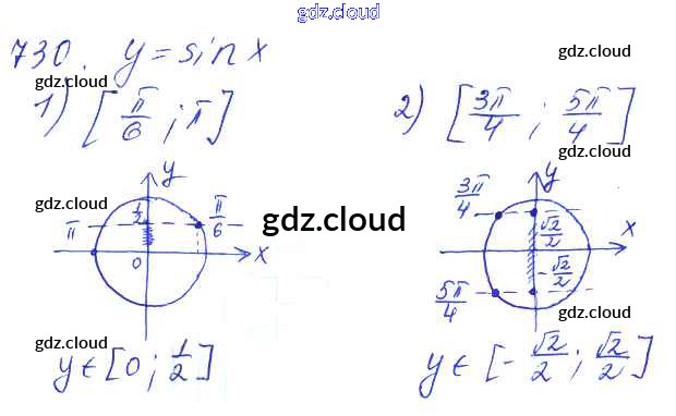 Ответ на задание 730 Учебник Алгебра за 10, 11 (десятый, одиннадцатый) класс Алимов, Ткачева, Колягин, Федорова, Шабунин Базовый и углубленный уровень 2015