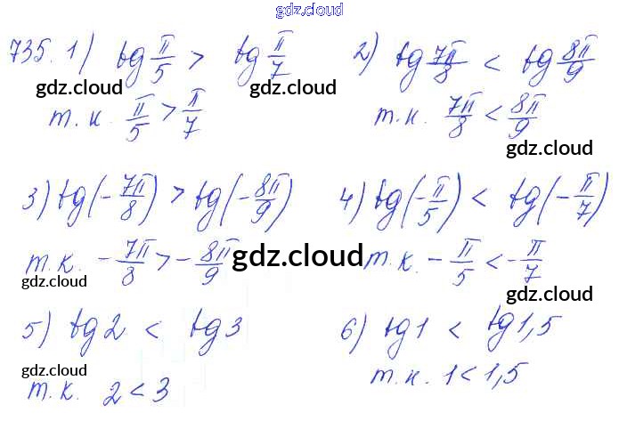 Ответ на задание 735 Учебник Алгебра за 10, 11 (десятый, одиннадцатый) класс Алимов, Ткачева, Колягин, Федорова, Шабунин Базовый и углубленный уровень 2015
