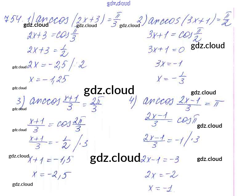 Ответ на задание 754 Учебник Алгебра за 10, 11 (десятый, одиннадцатый) класс Алимов, Ткачева, Колягин, Федорова, Шабунин Базовый и углубленный уровень 2015