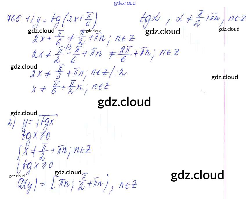 Ответ на задание 765 Учебник Алгебра за 10, 11 (десятый, одиннадцатый) класс Алимов, Ткачева, Колягин, Федорова, Шабунин Базовый и углубленный уровень 2015