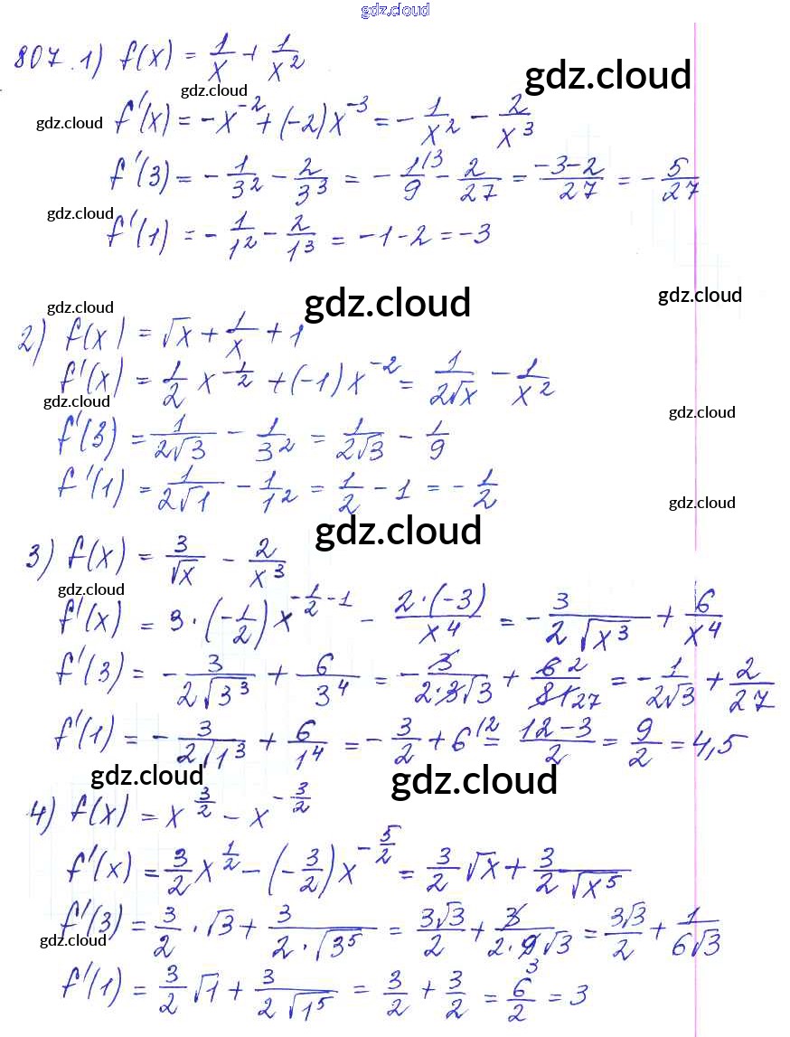 Ответ на задание 807 Учебник Алгебра за 10, 11 (десятый, одиннадцатый) класс Алимов, Ткачева, Колягин, Федорова, Шабунин Базовый и углубленный уровень 2015