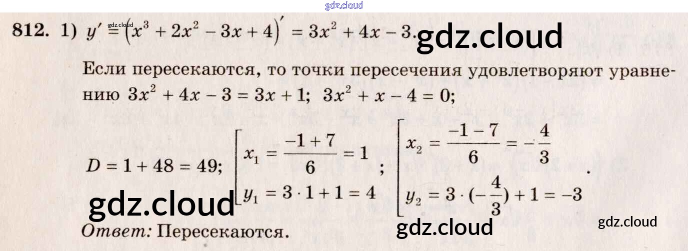 Ответ на задание 812 Учебник Алгебра за 10, 11 (десятый, одиннадцатый) класс Алимов, Ткачева, Колягин, Федорова, Шабунин Базовый и углубленный уровень 2015