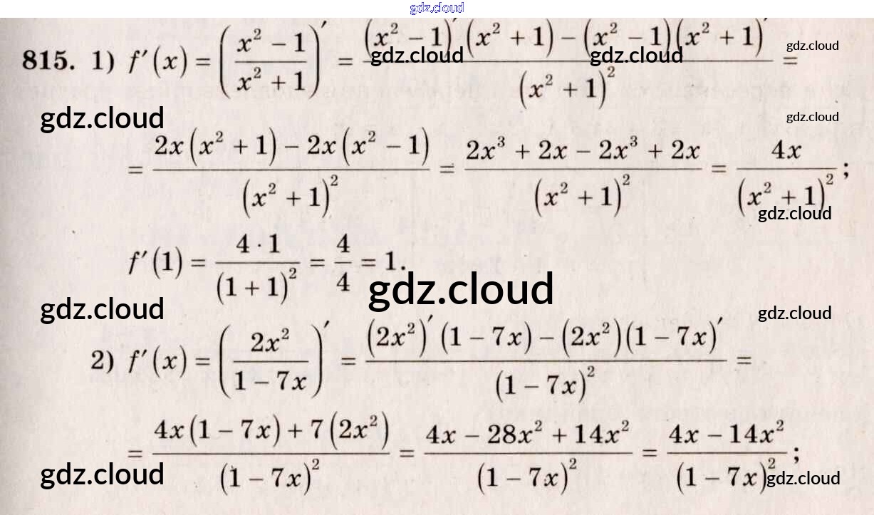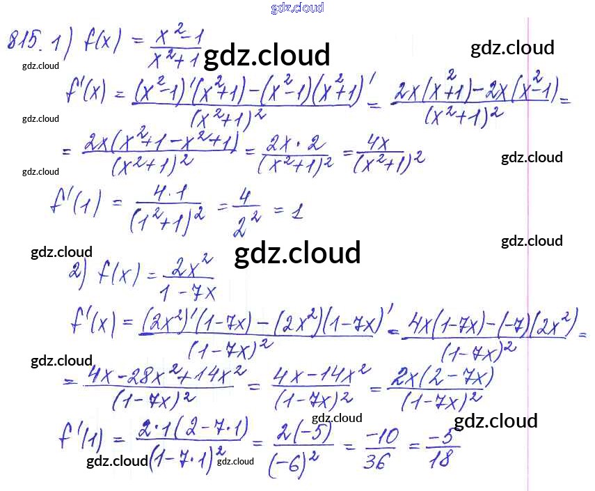 Ответ на задание 815 Учебник Алгебра за 10, 11 (десятый, одиннадцатый) класс Алимов, Ткачева, Колягин, Федорова, Шабунин Базовый и углубленный уровень 2015