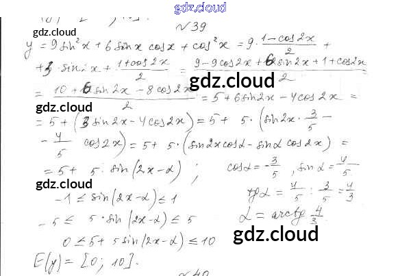 ПР-38 Ответы к Главе 7. Тригонометрические функции по Алгебре 11 класс Дидактические материалы Шабунин  Базовый уровень  Просвещение
