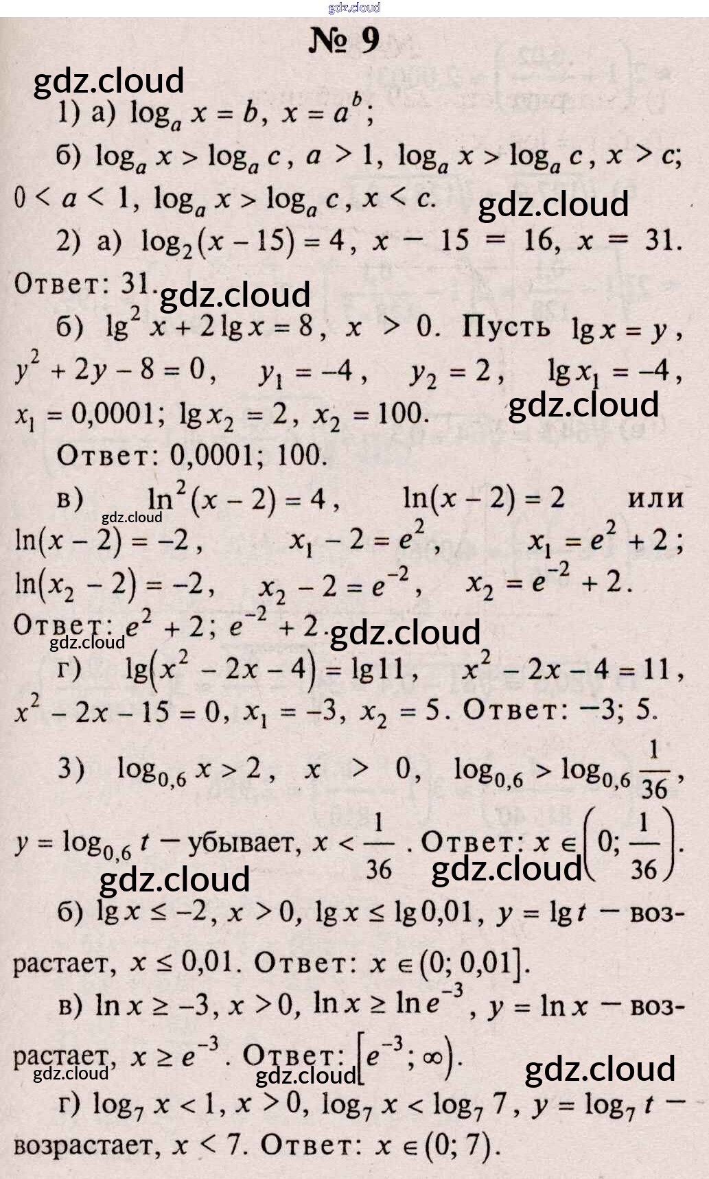 Ответ на задание 9 Учебник Алгебра за 10, 11 (десятый, одиннадцатый) класс Колмогоров, Абрамов, Дудницын, Ивлев, Шварцбурд 2008