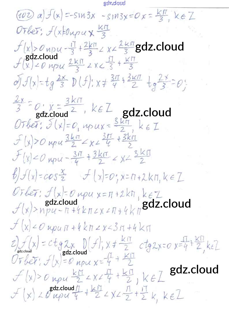 Ответ на задание 102 Учебник Алгебра за 10, 11 (десятый, одиннадцатый) класс Колмогоров, Абрамов, Дудницын, Ивлев, Шварцбурд 2008