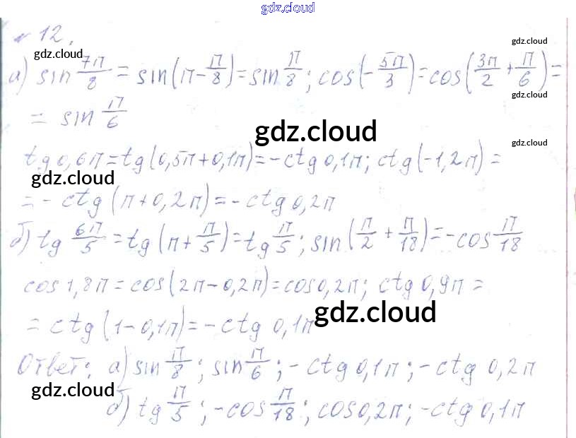 Ответ на задание 12 Учебник Алгебра за 10, 11 (десятый, одиннадцатый) класс Колмогоров, Абрамов, Дудницын, Ивлев, Шварцбурд 2008