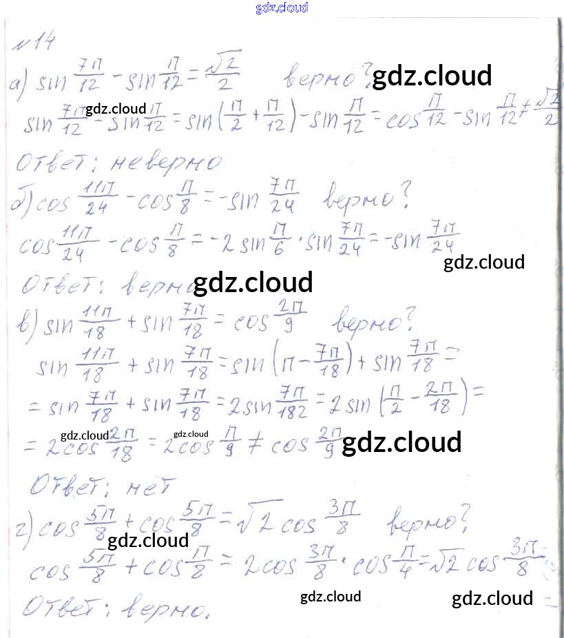 Ответ на задание 14 Учебник Алгебра за 10, 11 (десятый, одиннадцатый) класс Колмогоров, Абрамов, Дудницын, Ивлев, Шварцбурд 2008