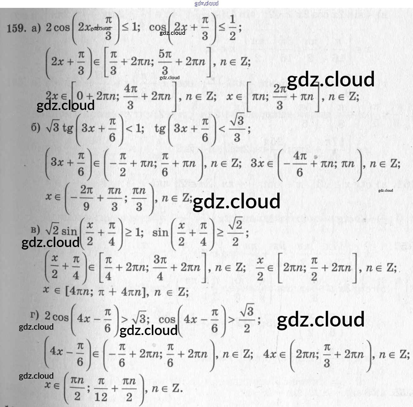 Ответ на задание 159 Учебник Алгебра за 10, 11 (десятый, одиннадцатый) класс Колмогоров, Абрамов, Дудницын, Ивлев, Шварцбурд 2008