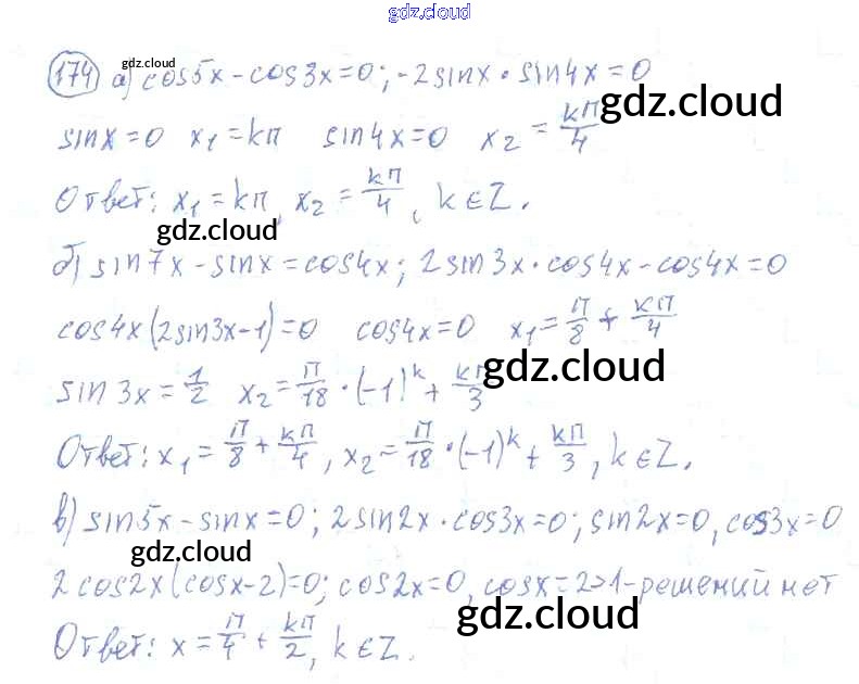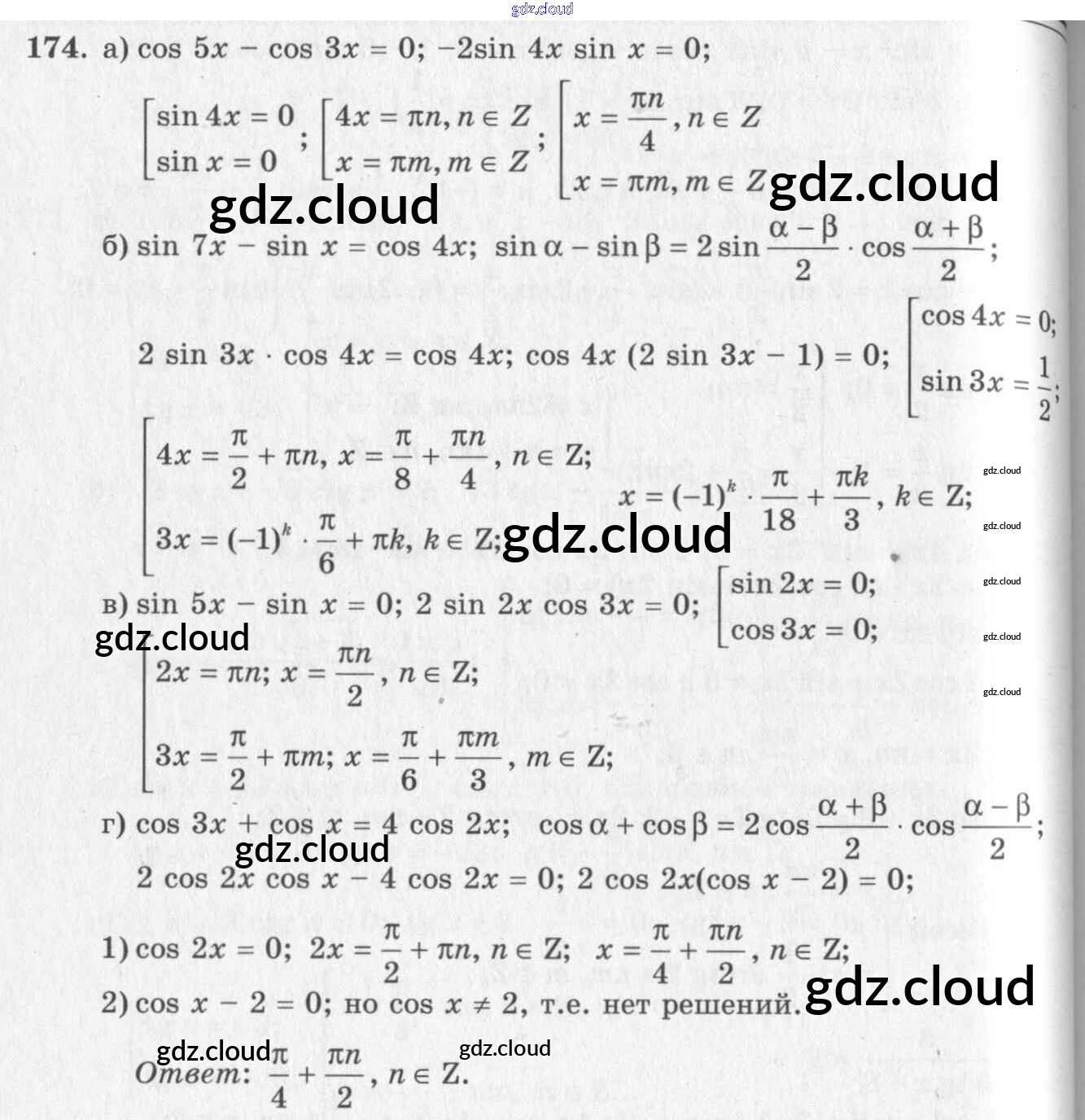 Ответ на задание 174 Учебник Алгебра за 10, 11 (десятый, одиннадцатый) класс Колмогоров, Абрамов, Дудницын, Ивлев, Шварцбурд 2008