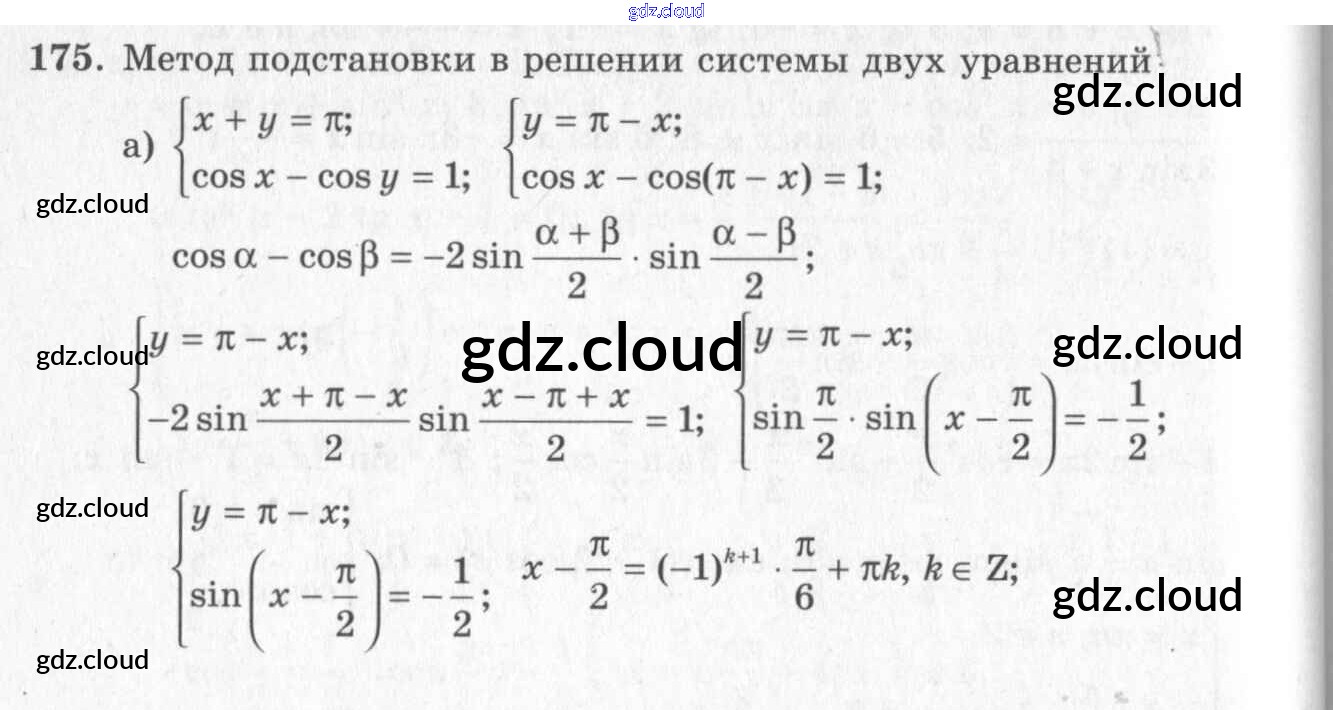 Ответ на задание 175 Учебник Алгебра за 10, 11 (десятый, одиннадцатый) класс Колмогоров, Абрамов, Дудницын, Ивлев, Шварцбурд 2008