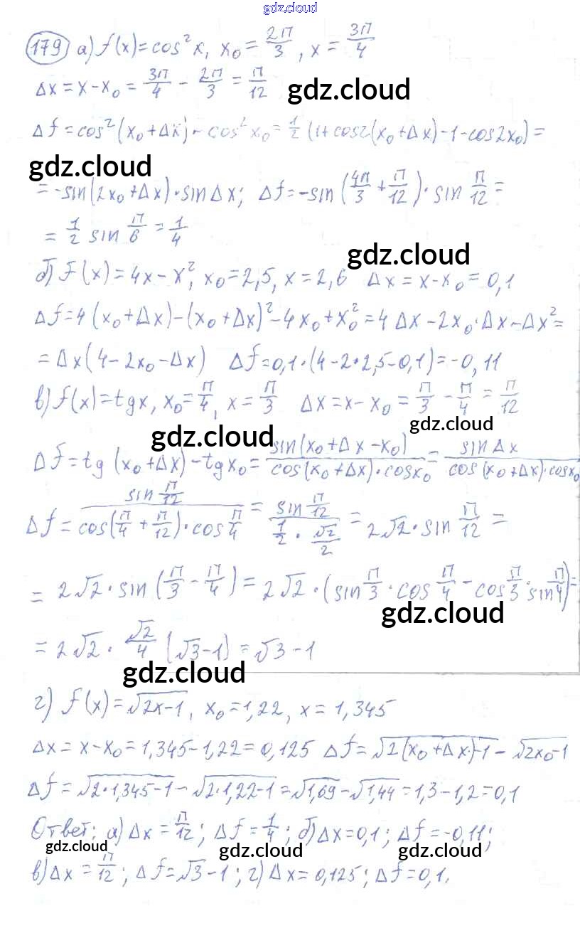 Ответ на задание 179 Учебник Алгебра за 10, 11 (десятый, одиннадцатый) класс Колмогоров, Абрамов, Дудницын, Ивлев, Шварцбурд 2008