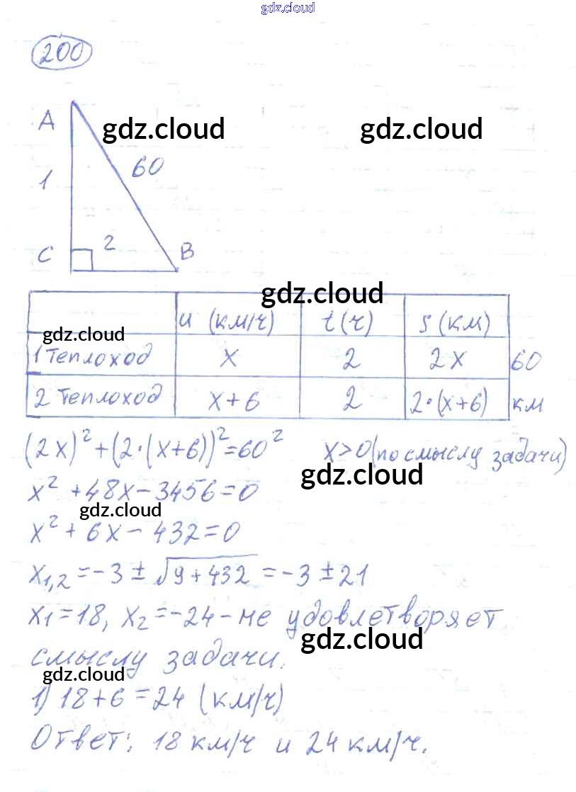 Ответ на задание 200 Учебник Алгебра за 10, 11 (десятый, одиннадцатый) класс Колмогоров, Абрамов, Дудницын, Ивлев, Шварцбурд 2008