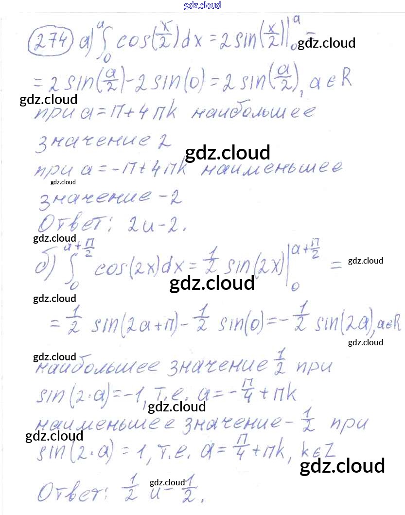 Ответ на задание 274 Учебник Алгебра за 10, 11 (десятый, одиннадцатый) класс Колмогоров, Абрамов, Дудницын, Ивлев, Шварцбурд 2008