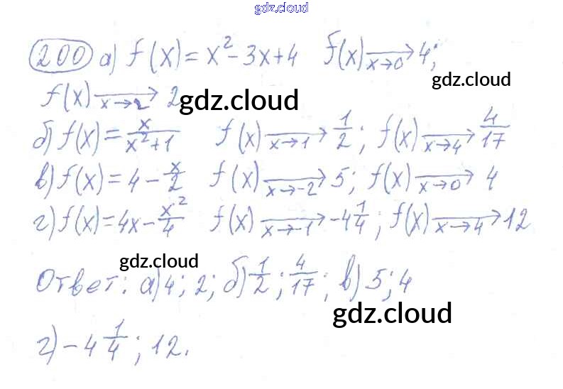 Ответ на задание 200 Учебник Алгебра за 10, 11 (десятый, одиннадцатый) класс Колмогоров, Абрамов, Дудницын, Ивлев, Шварцбурд 2008