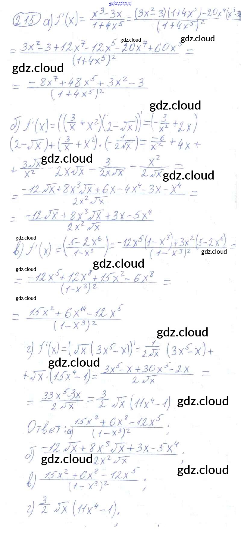 Ответ на задание 215 Учебник Алгебра за 10, 11 (десятый, одиннадцатый) класс Колмогоров, Абрамов, Дудницын, Ивлев, Шварцбурд 2008