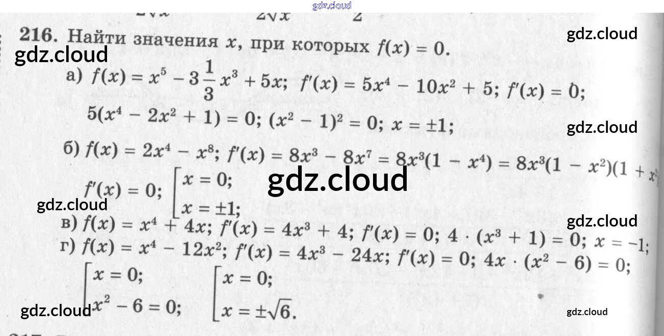 Ответ на задание 216 Учебник Алгебра за 10, 11 (десятый, одиннадцатый) класс Колмогоров, Абрамов, Дудницын, Ивлев, Шварцбурд 2008