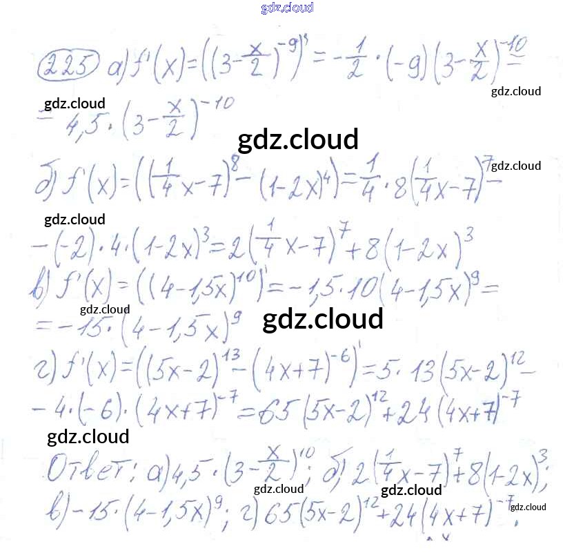 Ответ на задание 225 Учебник Алгебра за 10, 11 (десятый, одиннадцатый) класс Колмогоров, Абрамов, Дудницын, Ивлев, Шварцбурд 2008