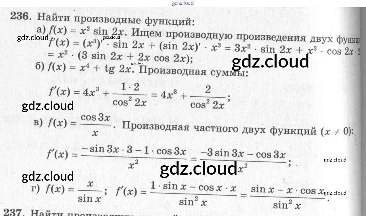 Ответ на задание 236 Учебник Алгебра за 10, 11 (десятый, одиннадцатый) класс Колмогоров, Абрамов, Дудницын, Ивлев, Шварцбурд 2008
