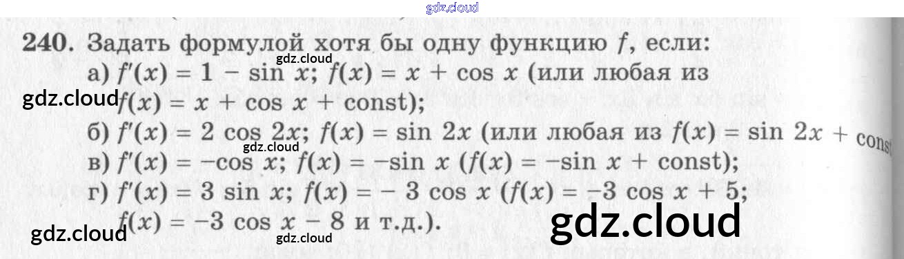 Ответ на задание 240 Учебник Алгебра за 10, 11 (десятый, одиннадцатый) класс Колмогоров, Абрамов, Дудницын, Ивлев, Шварцбурд 2008