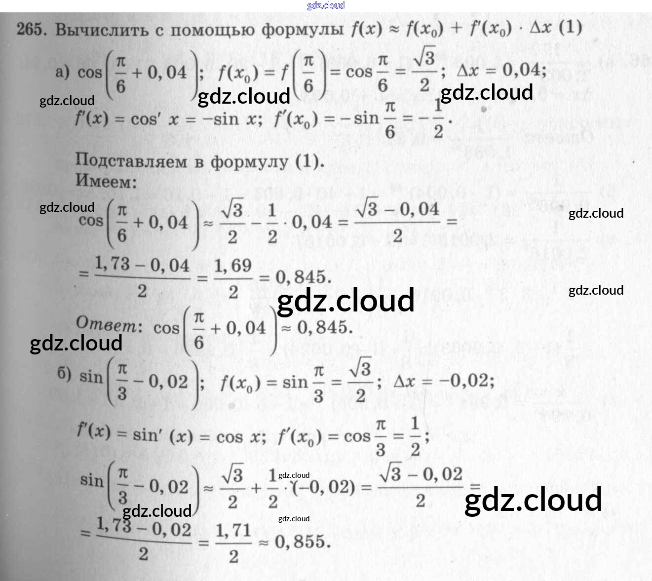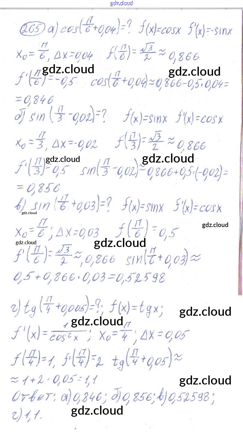 Ответ на задание 265 Учебник Алгебра за 10, 11 (десятый, одиннадцатый) класс Колмогоров, Абрамов, Дудницын, Ивлев, Шварцбурд 2008