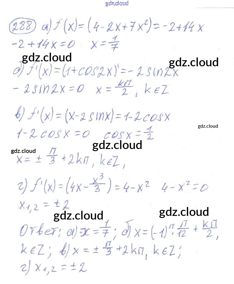 Ответ на задание 288 Учебник Алгебра за 10, 11 (десятый, одиннадцатый) класс Колмогоров, Абрамов, Дудницын, Ивлев, Шварцбурд 2008