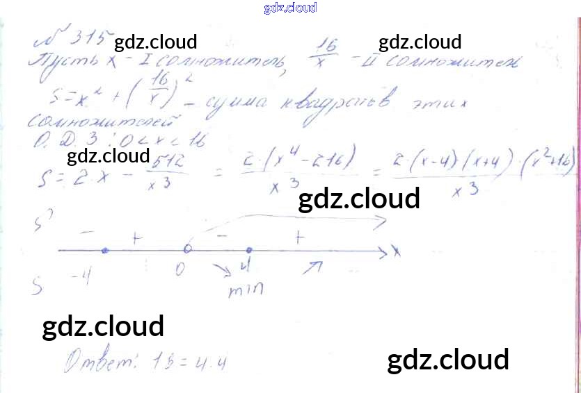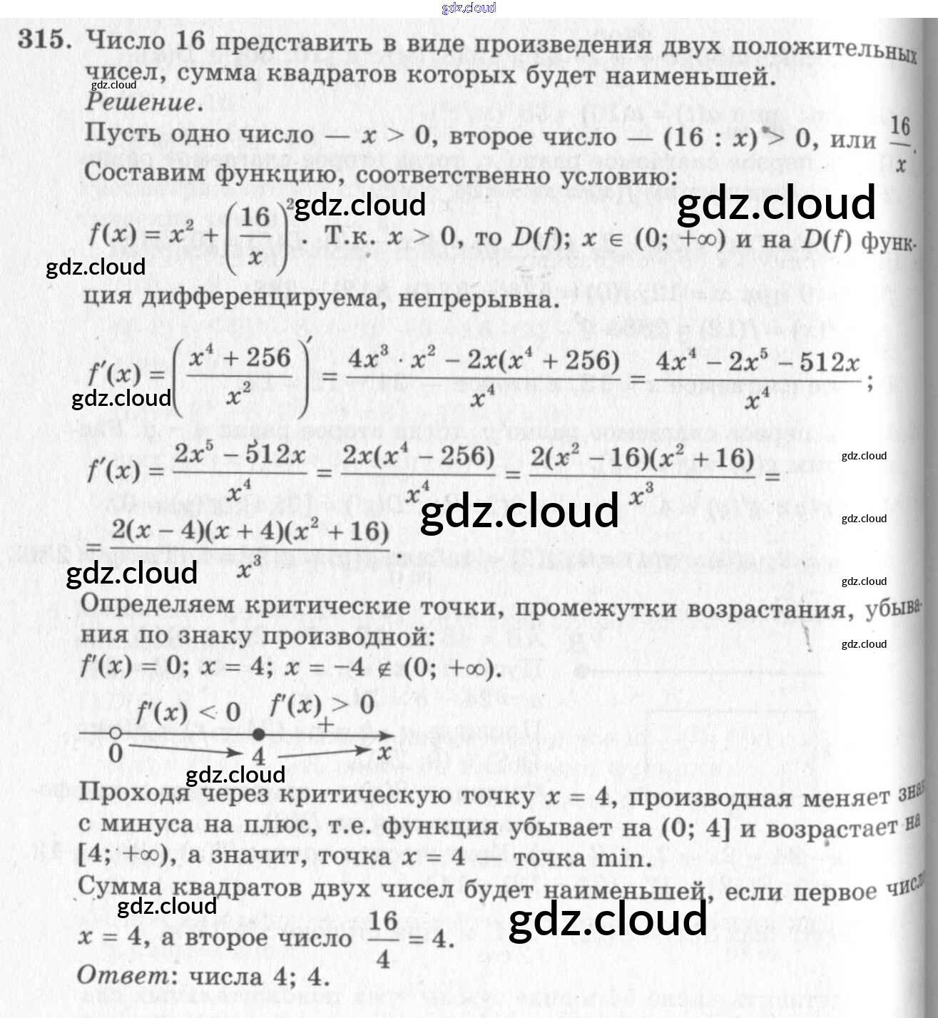 Ответ на задание 315 Учебник Алгебра за 10, 11 (десятый, одиннадцатый) класс Колмогоров, Абрамов, Дудницын, Ивлев, Шварцбурд 2008