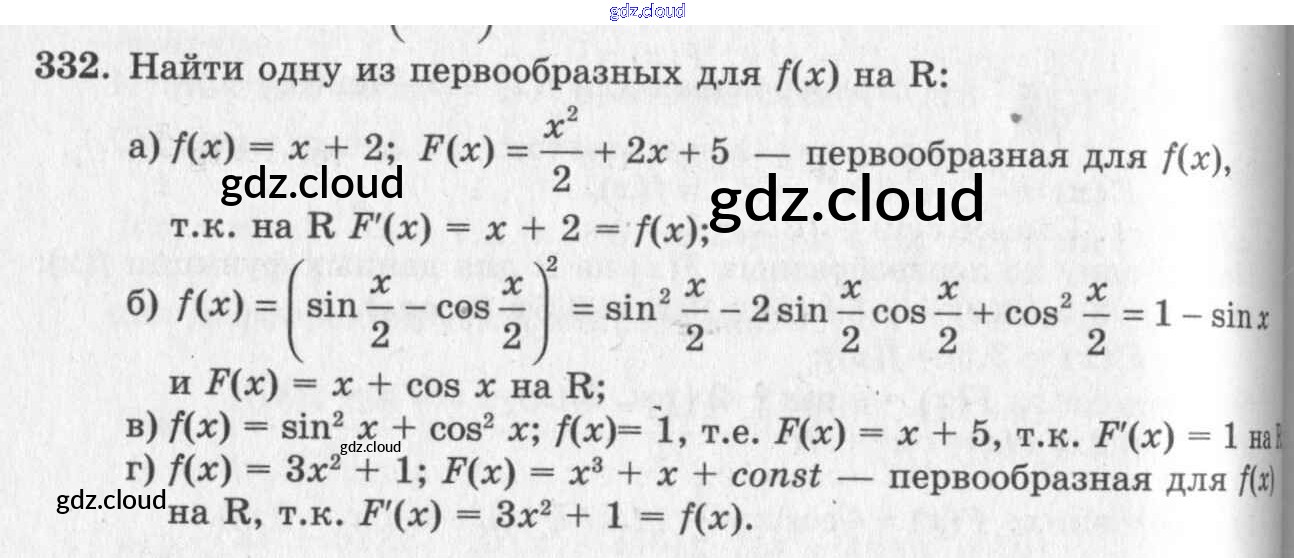 Ответ на задание 332 Учебник Алгебра за 10, 11 (десятый, одиннадцатый) класс Колмогоров, Абрамов, Дудницын, Ивлев, Шварцбурд 2008