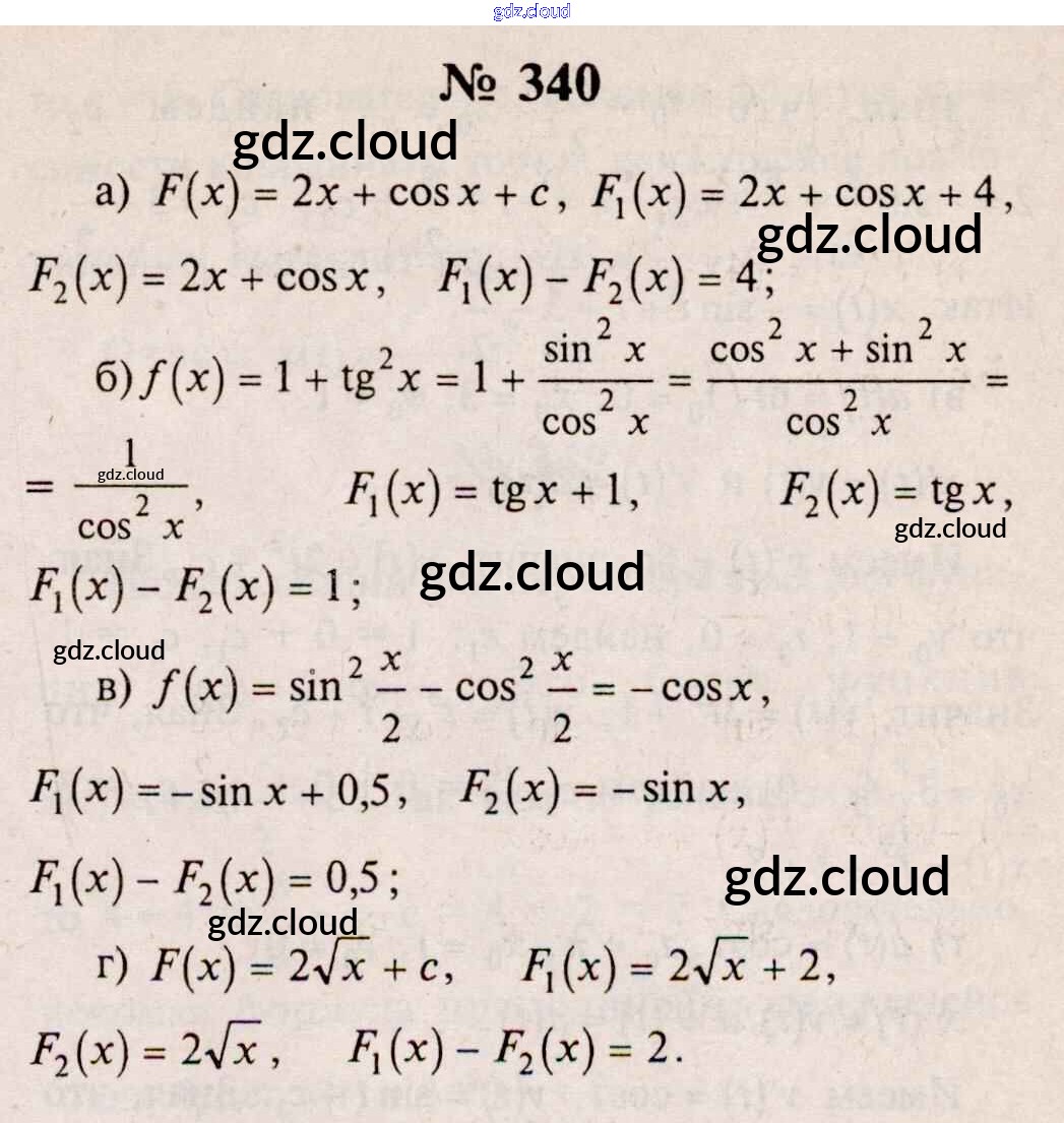 Ответ на задание 340 Учебник Алгебра за 10, 11 (десятый, одиннадцатый) класс Колмогоров, Абрамов, Дудницын, Ивлев, Шварцбурд 2008
