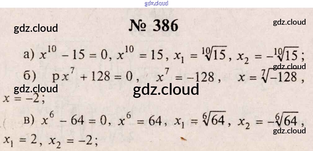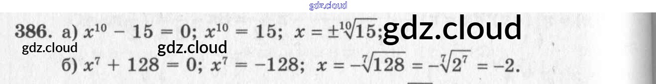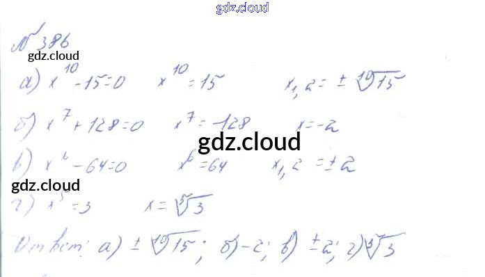 Ответ на задание 386 Учебник Алгебра за 10, 11 (десятый, одиннадцатый) класс Колмогоров, Абрамов, Дудницын, Ивлев, Шварцбурд 2008