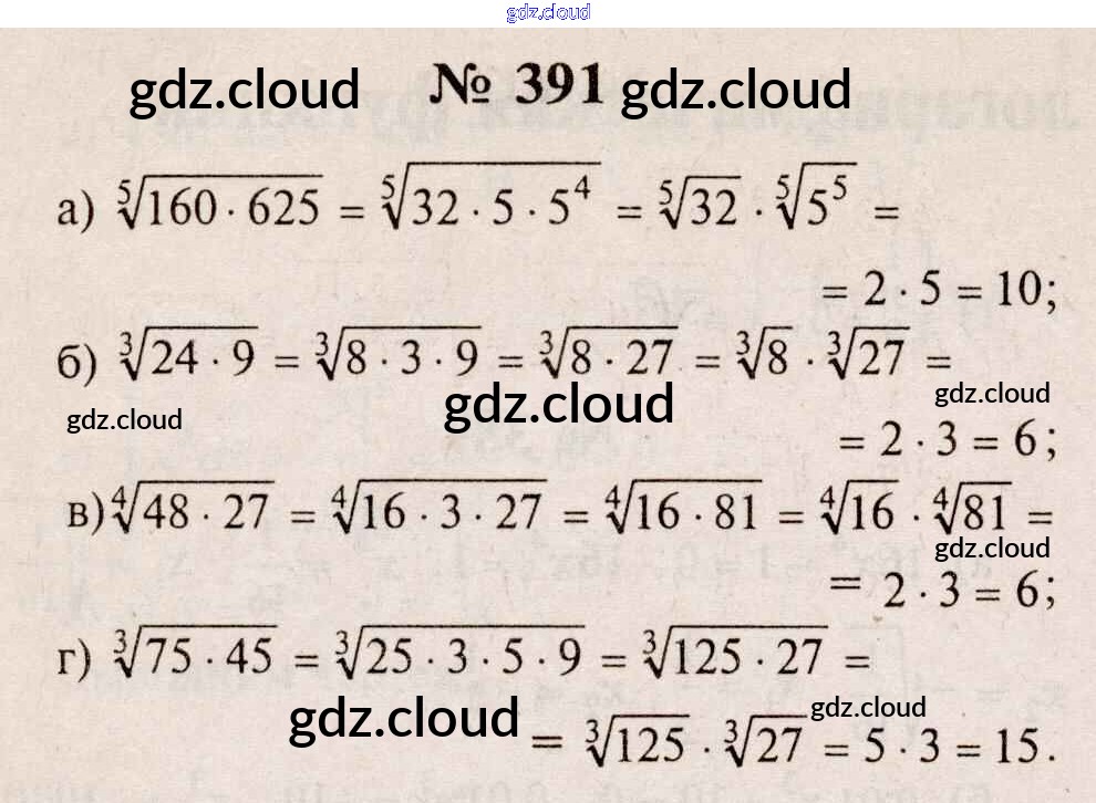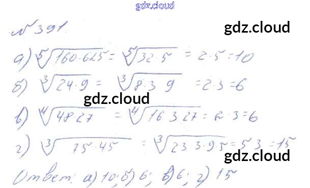 Ответ на задание 391 Учебник Алгебра за 10, 11 (десятый, одиннадцатый) класс Колмогоров, Абрамов, Дудницын, Ивлев, Шварцбурд 2008