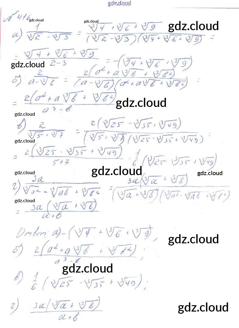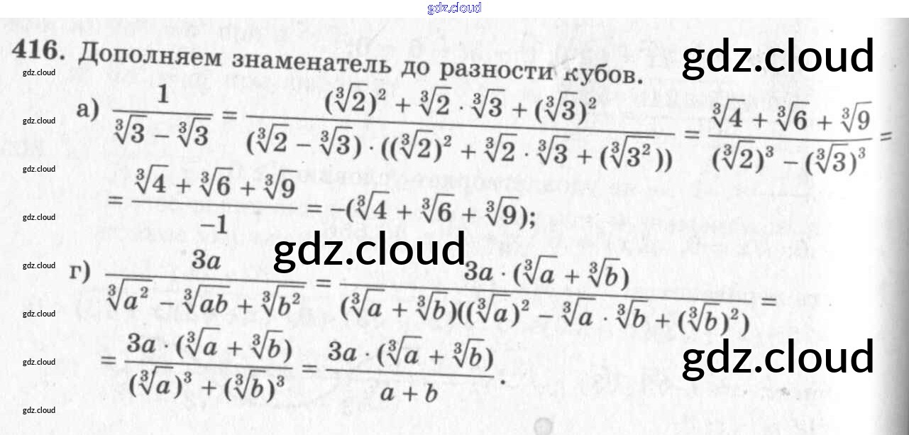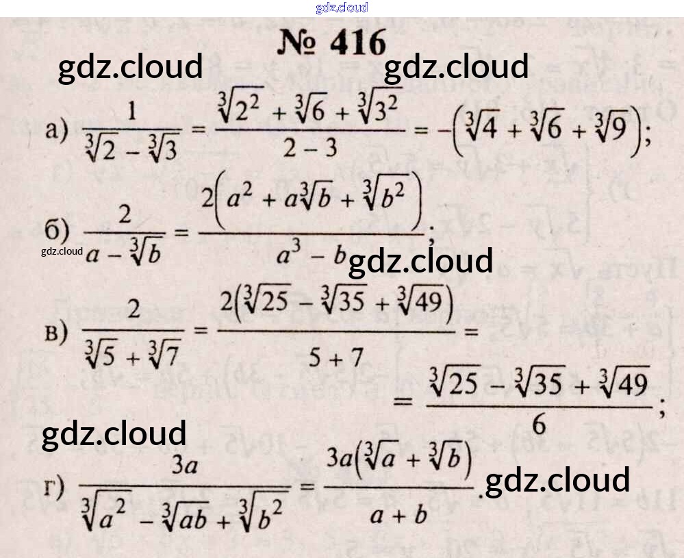 Ответ на задание 416 Учебник Алгебра за 10, 11 (десятый, одиннадцатый) класс Колмогоров, Абрамов, Дудницын, Ивлев, Шварцбурд 2008