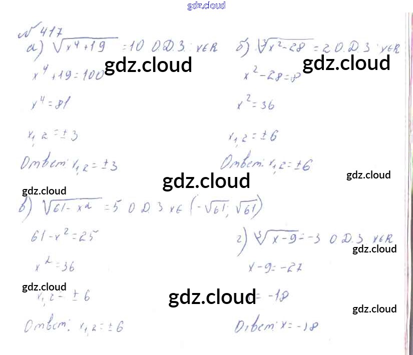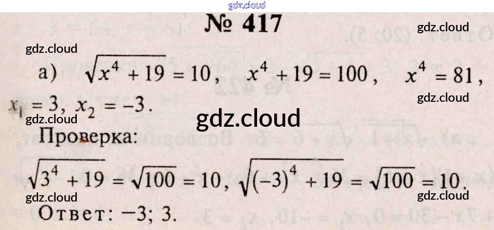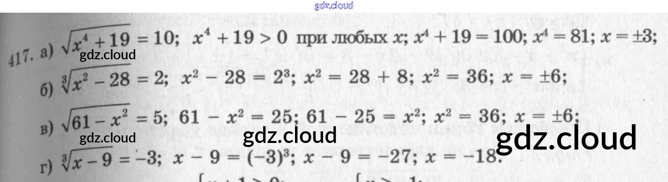 Ответ на задание 417 Учебник Алгебра за 10, 11 (десятый, одиннадцатый) класс Колмогоров, Абрамов, Дудницын, Ивлев, Шварцбурд 2008
