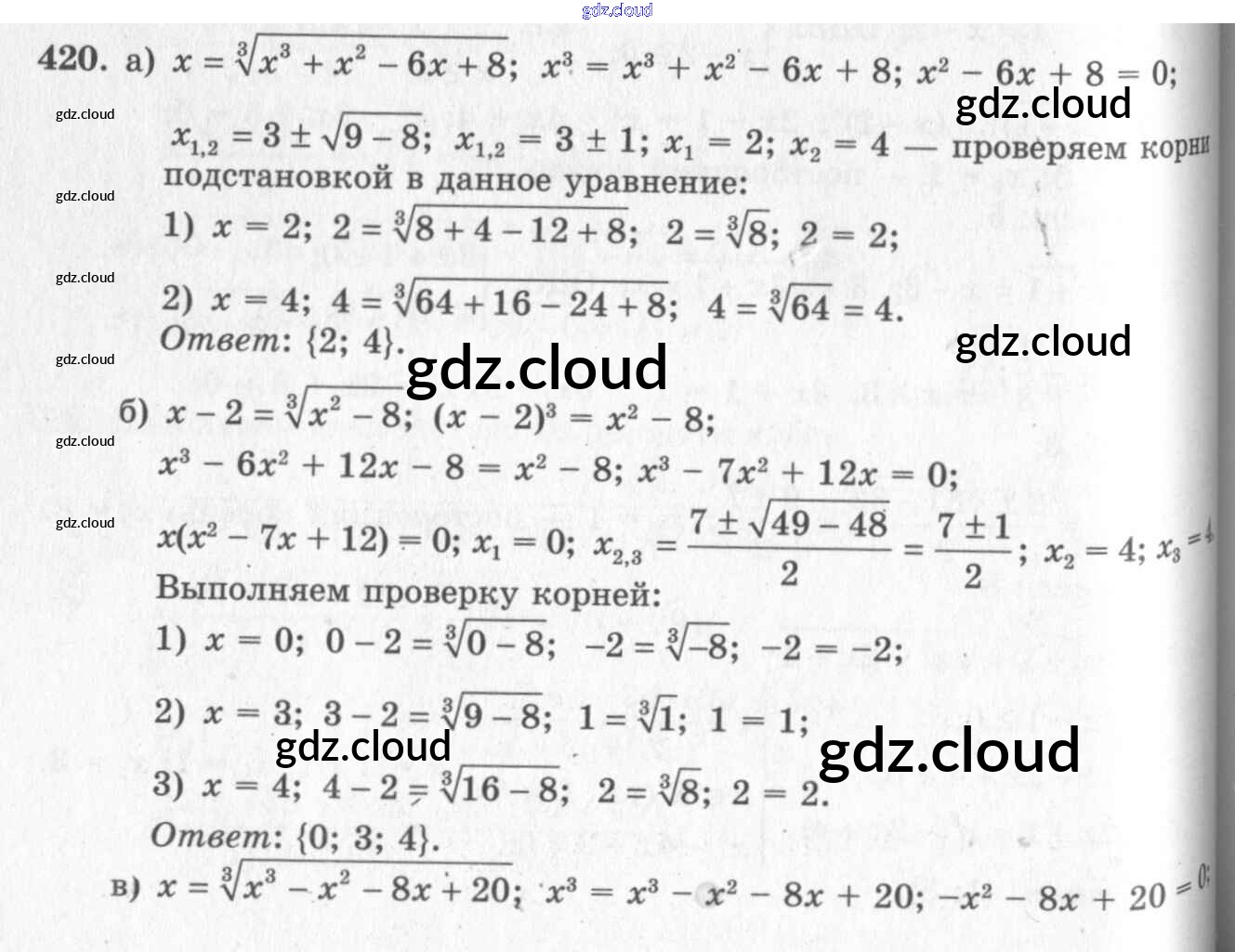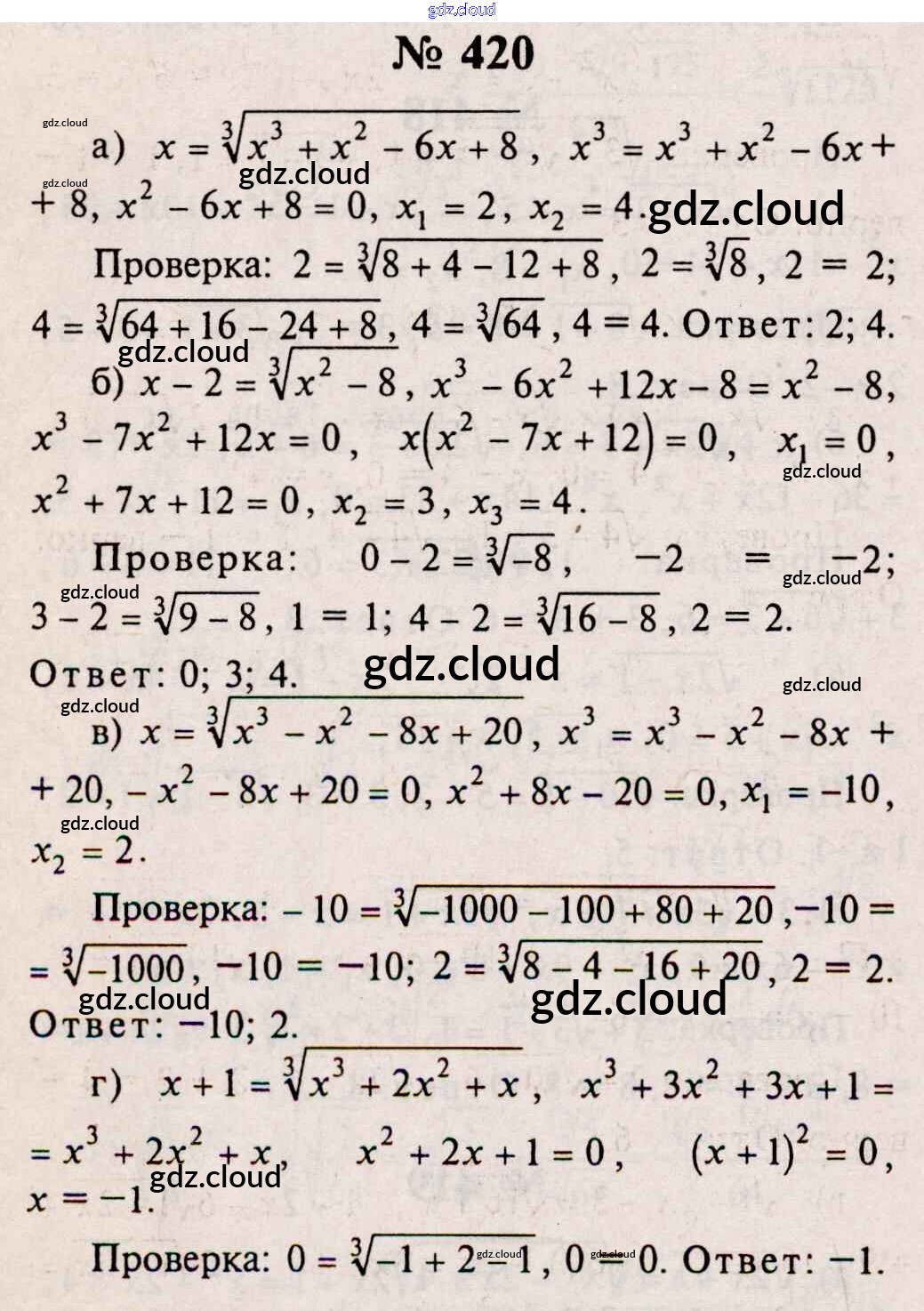 Ответ на задание 420 Учебник Алгебра за 10, 11 (десятый, одиннадцатый) класс Колмогоров, Абрамов, Дудницын, Ивлев, Шварцбурд 2008