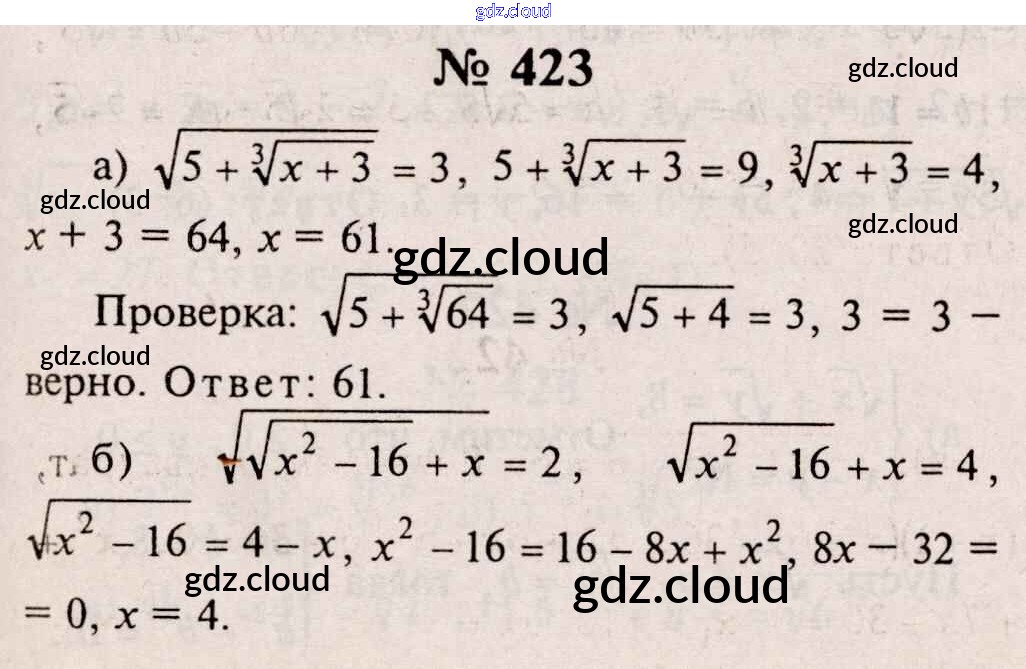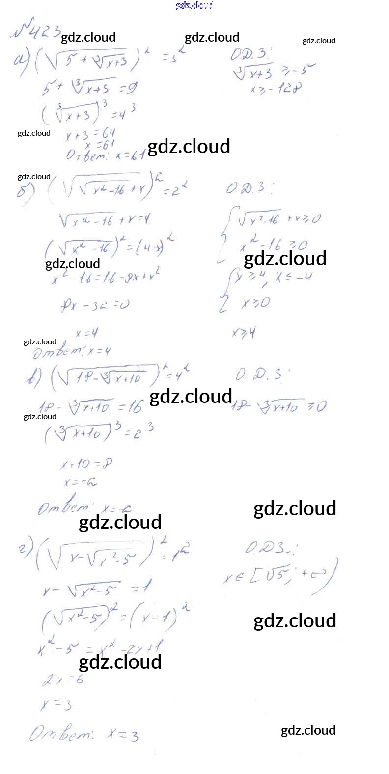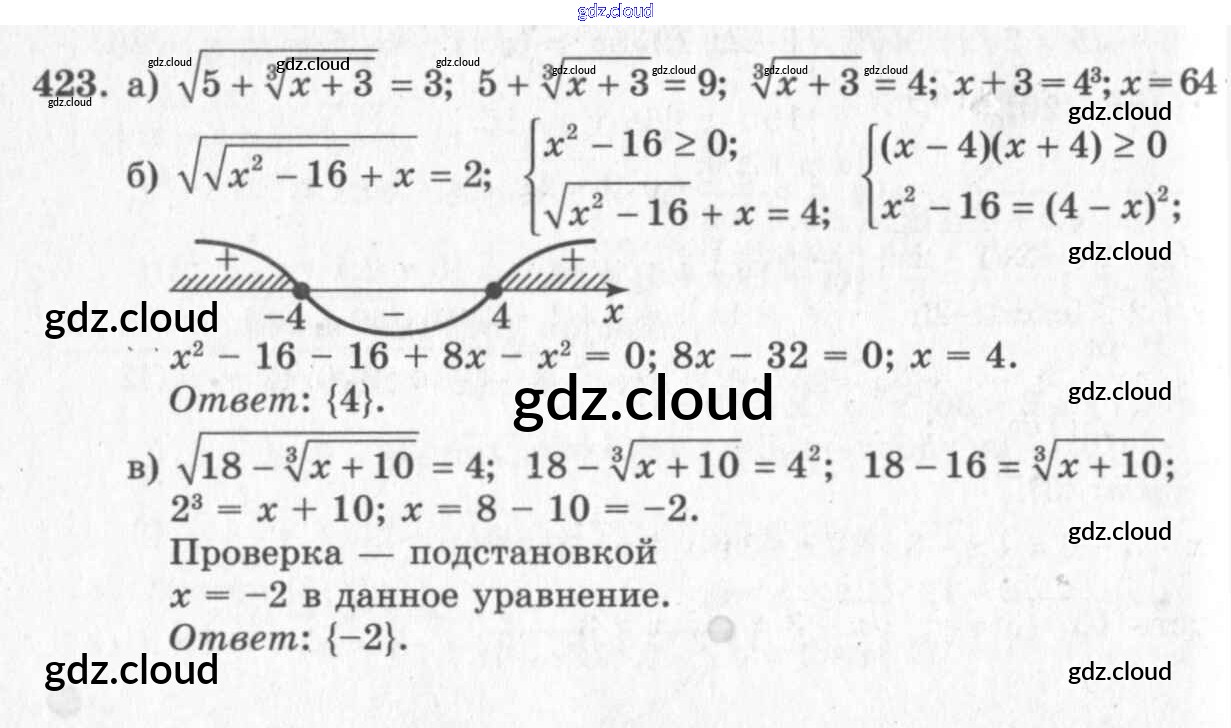 Ответ на задание 423 Учебник Алгебра за 10, 11 (десятый, одиннадцатый) класс Колмогоров, Абрамов, Дудницын, Ивлев, Шварцбурд 2008