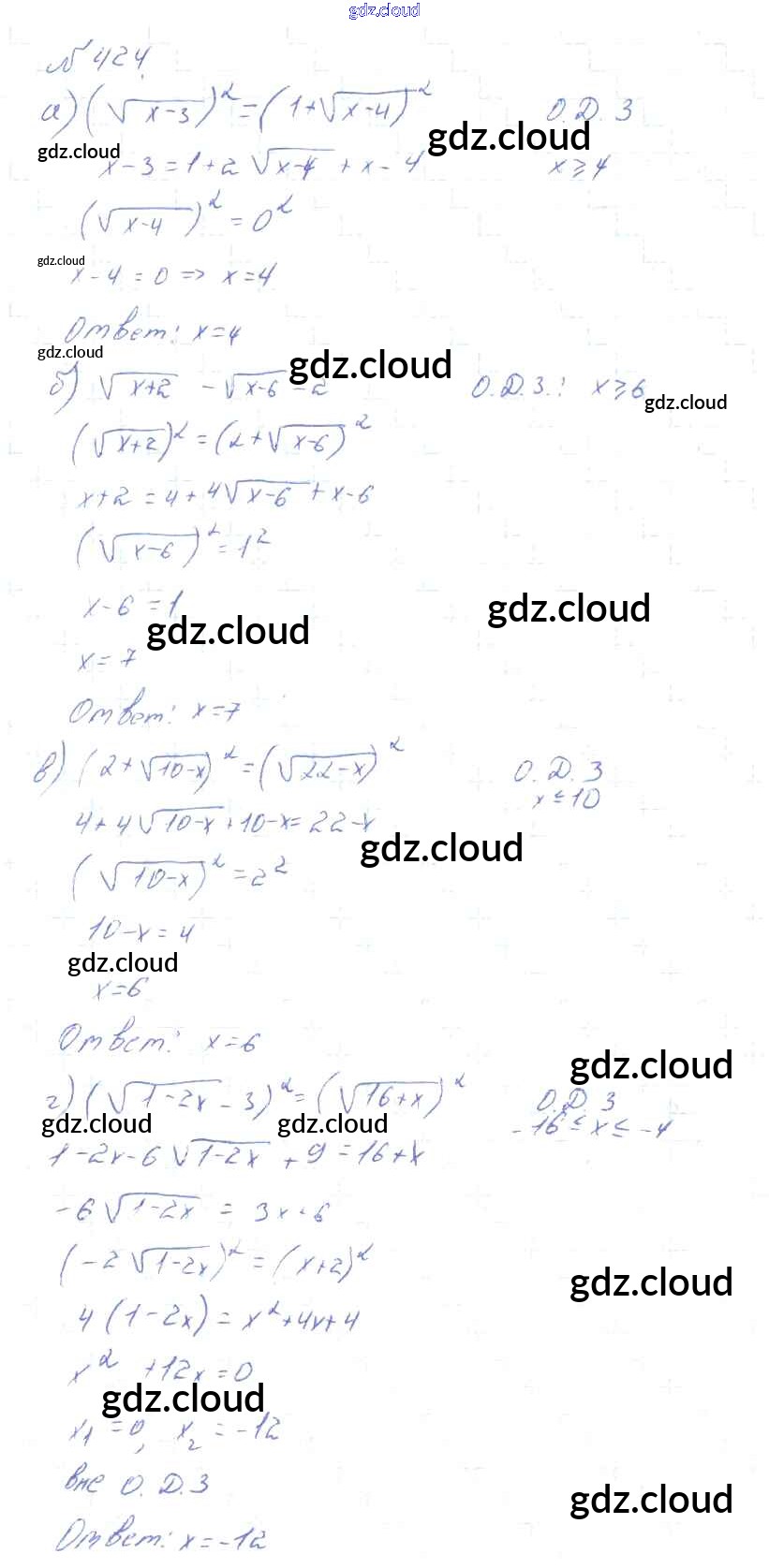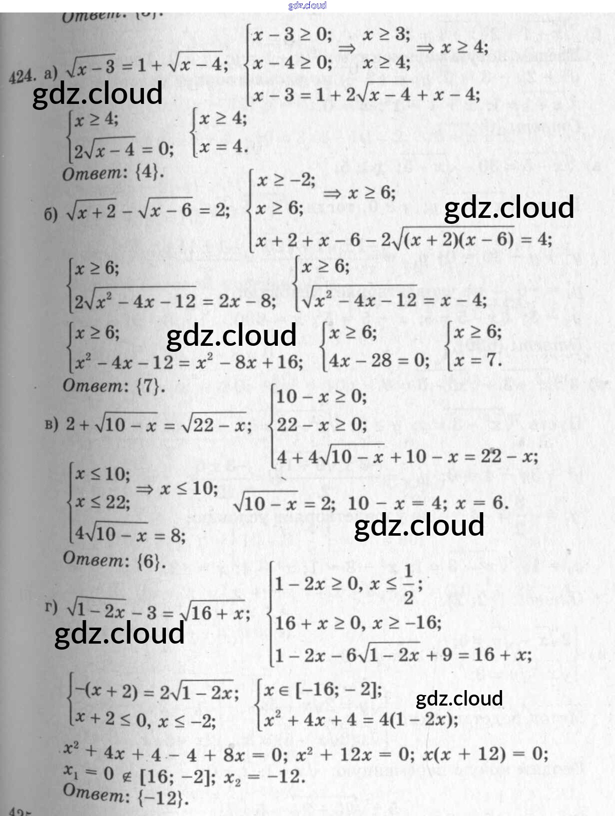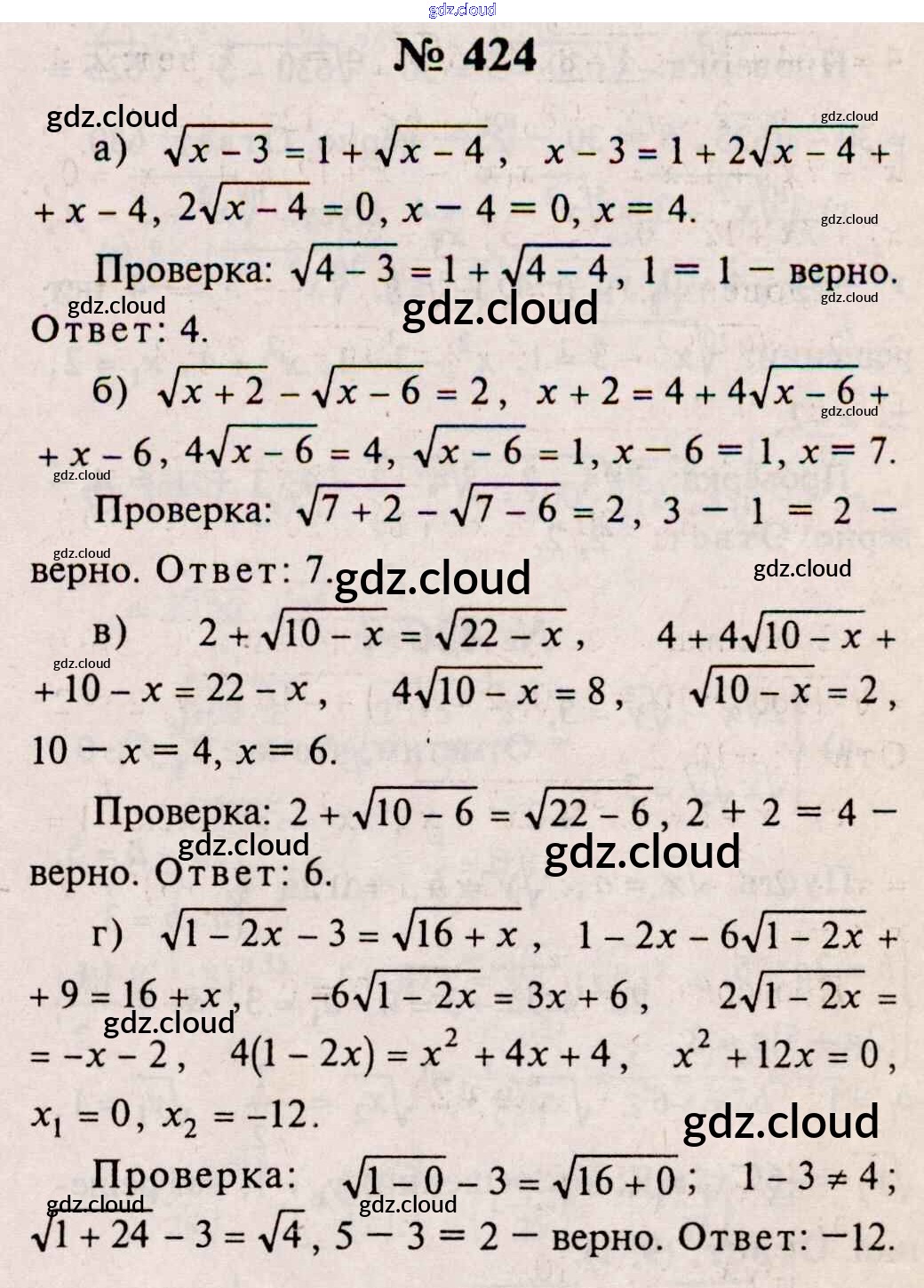 Ответ на задание 424 Учебник Алгебра за 10, 11 (десятый, одиннадцатый) класс Колмогоров, Абрамов, Дудницын, Ивлев, Шварцбурд 2008