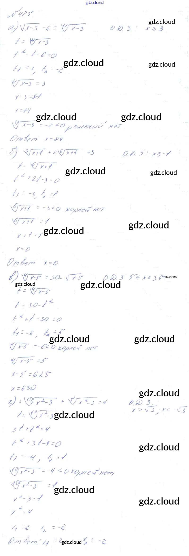 Ответ на задание 425 Учебник Алгебра за 10, 11 (десятый, одиннадцатый) класс Колмогоров, Абрамов, Дудницын, Ивлев, Шварцбурд 2008