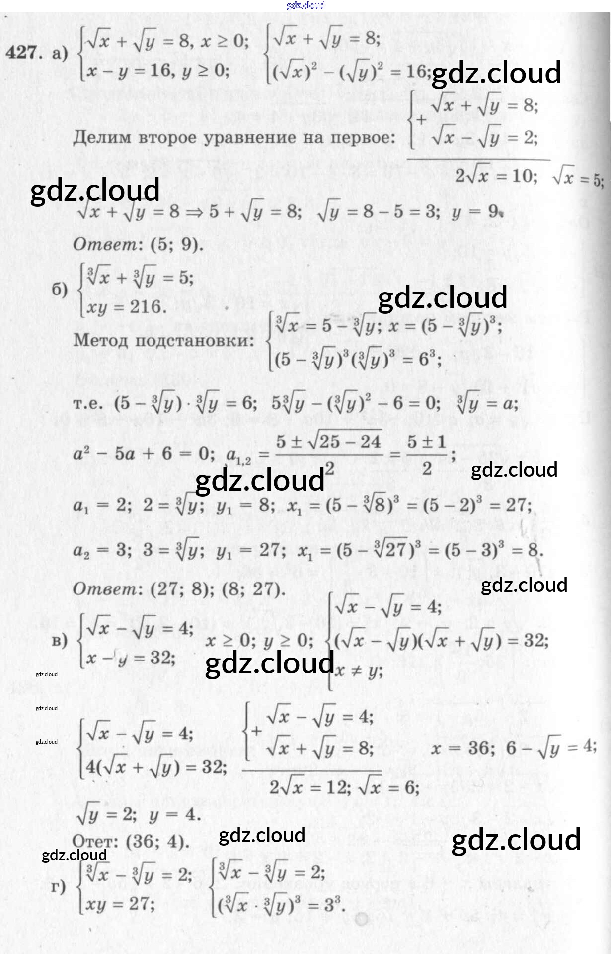 Ответ на задание 427 Учебник Алгебра за 10, 11 (десятый, одиннадцатый) класс Колмогоров, Абрамов, Дудницын, Ивлев, Шварцбурд 2008