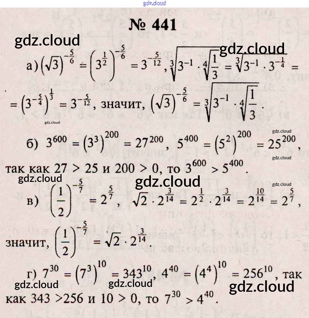 Ответ на задание 441 Учебник Алгебра за 10, 11 (десятый, одиннадцатый) класс Колмогоров, Абрамов, Дудницын, Ивлев, Шварцбурд 2008