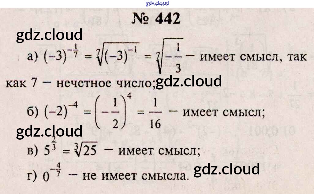 Ответ на задание 442 Учебник Алгебра за 10, 11 (десятый, одиннадцатый) класс Колмогоров, Абрамов, Дудницын, Ивлев, Шварцбурд 2008