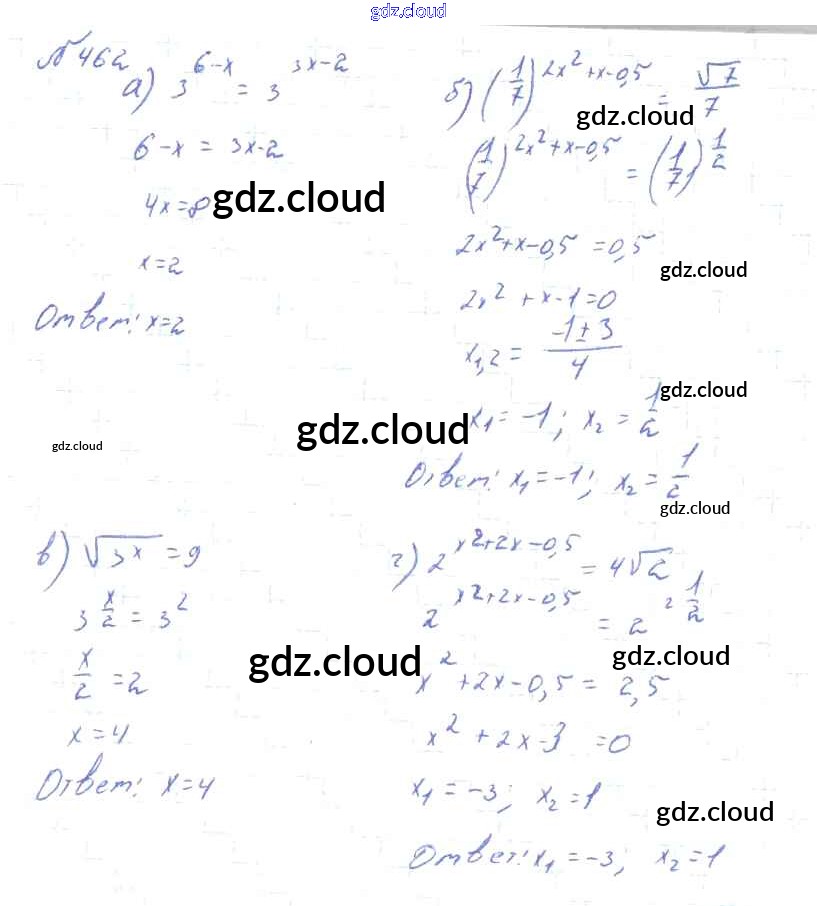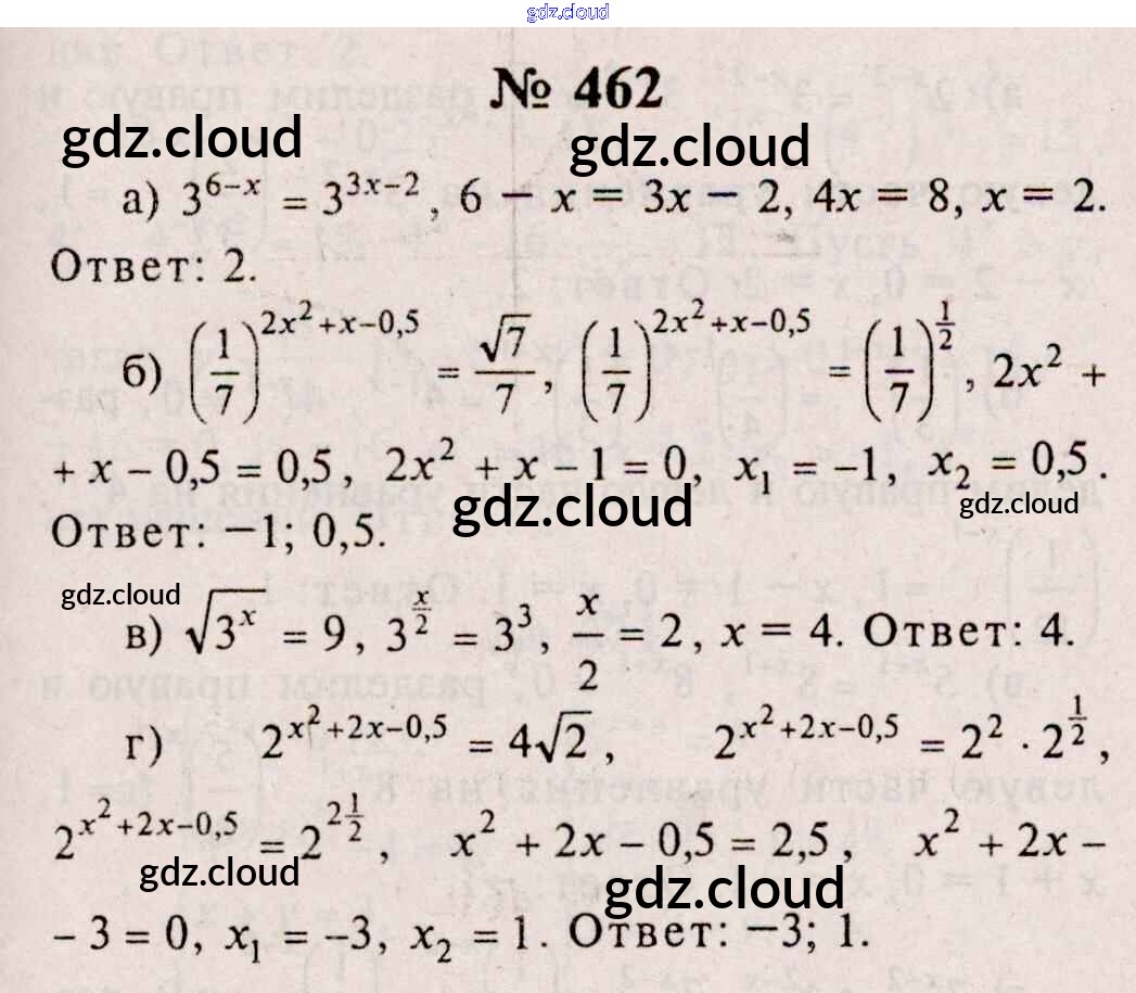 Ответ на задание 462 Учебник Алгебра за 10, 11 (десятый, одиннадцатый) класс Колмогоров, Абрамов, Дудницын, Ивлев, Шварцбурд 2008