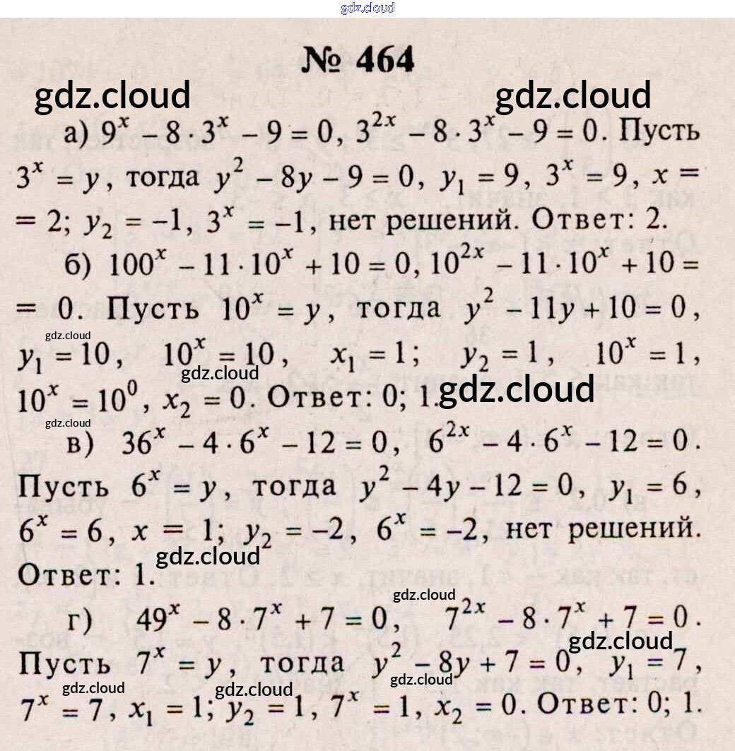 Ответ на задание 464 Учебник Алгебра за 10, 11 (десятый, одиннадцатый) класс Колмогоров, Абрамов, Дудницын, Ивлев, Шварцбурд 2008